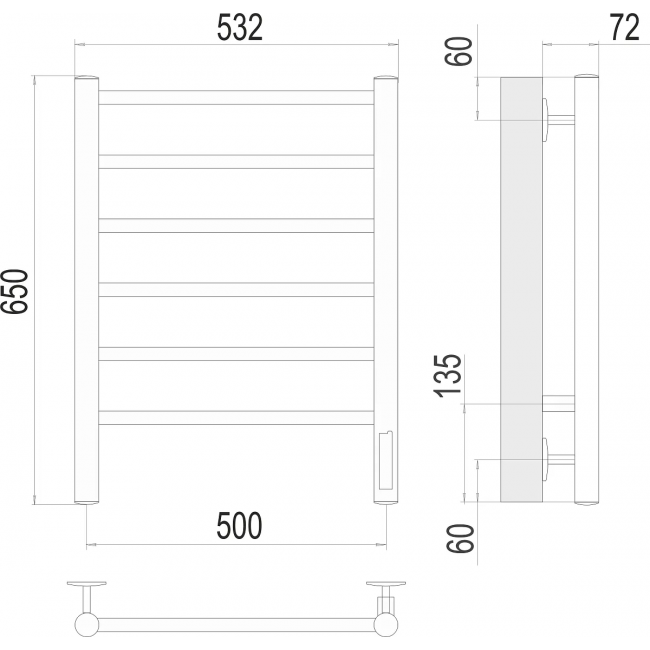 - Межосевое расстояние полотенцесушителя, мм: 500