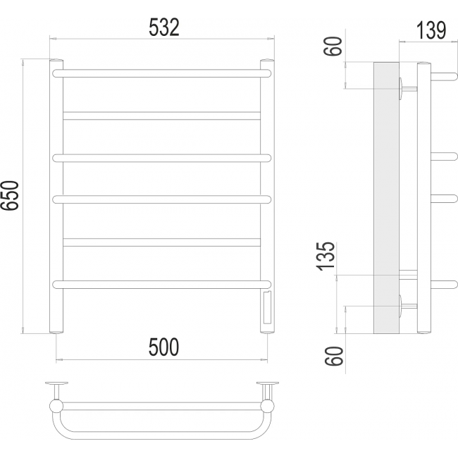 - Межосевое расстояние полотенцесушителя, мм: 500
