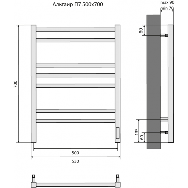 Полотенцесушитель электрический 500x700 Aquatek Альтаир AQ EL KP0770BL черный купить с доставкой. 100% Оригинал. Гарантия!