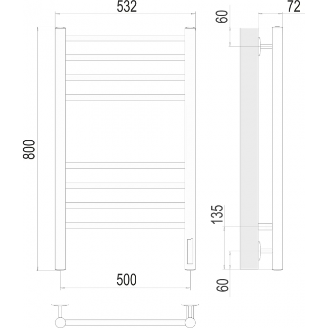 - Межосевое расстояние полотенцесушителя, мм: 500