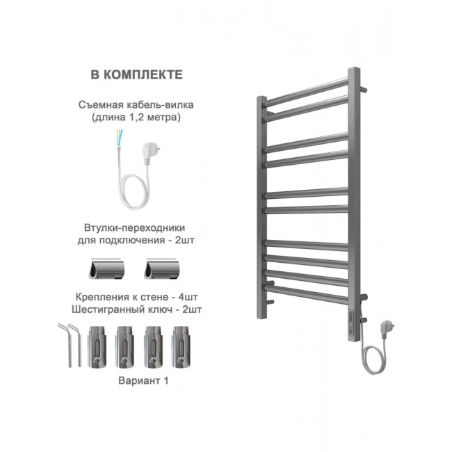 - Простота установки и полная комплектация, изделие готово к установке — все необходимое для монтажа уже в комплекте. Для монтажа не потребуется профессиональная помощь или использование сложных инструментов. Достаточно закрепить полотенцесушитель на стене в непосредственной близости от розетки. Габарит выступа от стены регулируется телескопическими крепежами