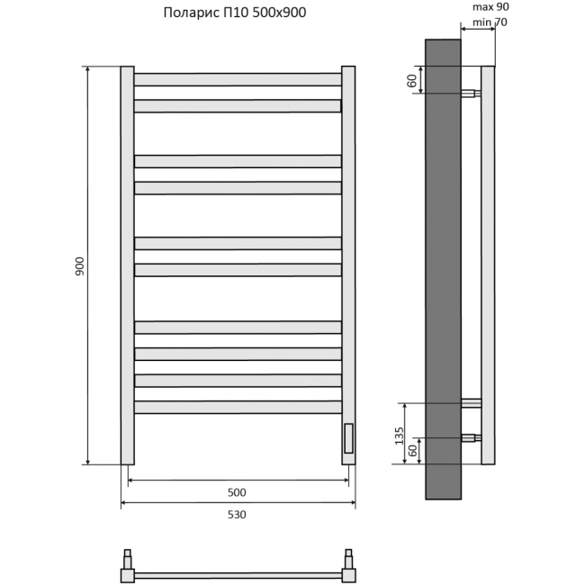 Полотенцесушитель электрический 500x900 Aquatek Поларис AQ EL KO1090CH хром купить с доставкой. 100% Оригинал. Гарантия!