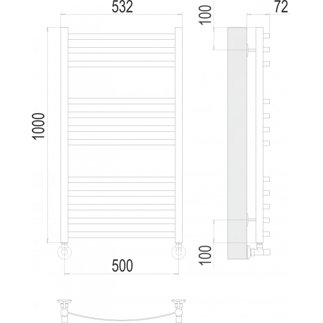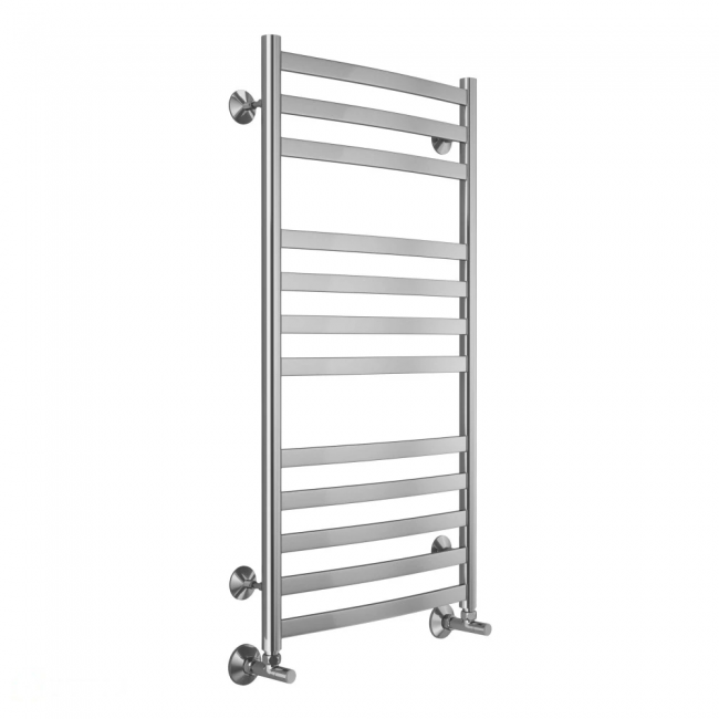 Водяной полотенцесушитель Terminus Авиэль 500x696 имеет 10 перекладин, разделенных на группы 6-4. Он изготовлен из пищевой нержавеющей стали AISI 304L с высоким содержанием легирующих элементов, Ni и Cr, с использованием контактной сварки - аргонно-дуговая технология (TIG). Толщина стенки используемой трубы не менее 2 мм, это обеспечивает 10-ти кратный запас прочности, труба устойчива к резким перепадам давления в системе водоснабжения. Поверхность цвета Хром с плазменной полировкой.