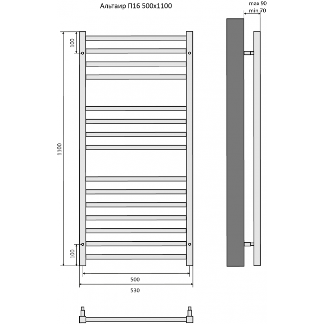 Полотенцесушитель водяной 500x1100 Aquatek Альтаир AQ KK1611BL черный купить с доставкой. 100% Оригинал. Гарантия!