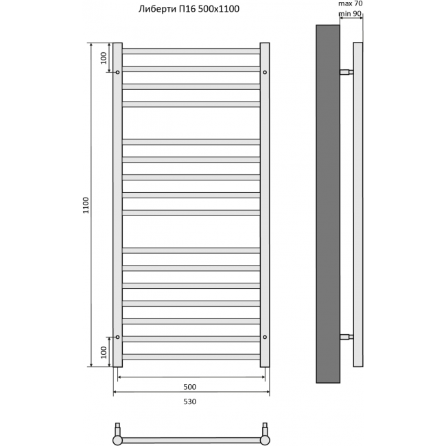 Полотенцесушитель водяной 500x1100 Aquatek Либерти AQ RR1610CH хром купить с доставкой. 100% Оригинал. Гарантия!