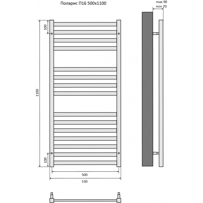 Полотенцесушитель водяной 500x1100 Aquatek Поларис AQ KO1610CH хром купить с доставкой. 100% Оригинал. Гарантия!