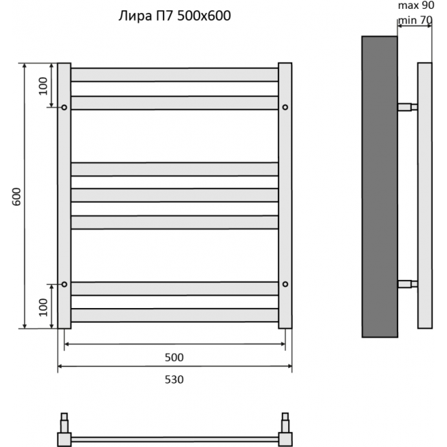 Полотенцесушитель водяной 500x600 Aquatek Лира AQ KP0760CH хром купить с доставкой. 100% Оригинал. Гарантия!