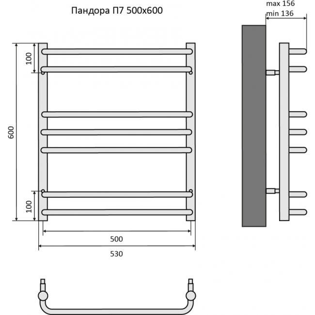 Полотенцесушитель водяной 500x600 Aquatek Пандора AQ RRС0760BL черный купить с доставкой. 100% Оригинал. Гарантия!