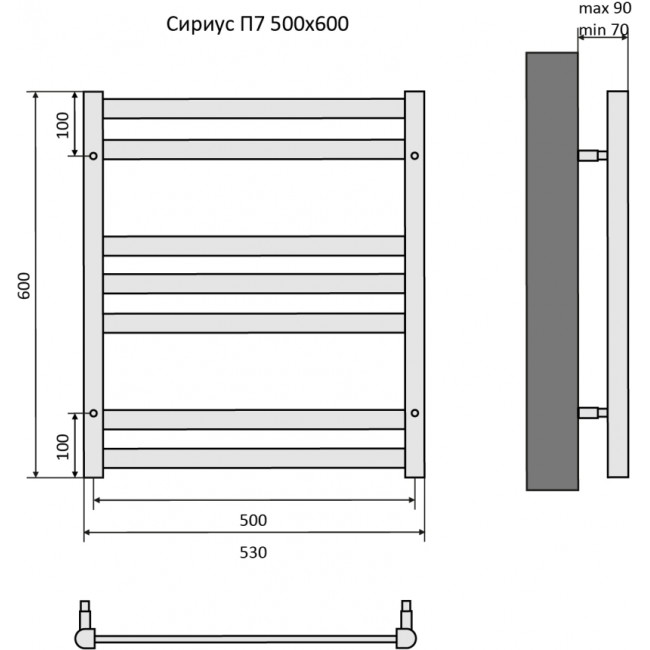 Полотенцесушитель водяной 500x600 Aquatek Сириус AQ DP0760CH хром купить с доставкой. 100% Оригинал. Гарантия!