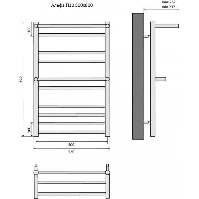 Полотенцесушитель водяной 500x800 Aquatek Альфа AQ RRP1080BL черный купить с доставкой. 100% Оригинал. Гарантия!