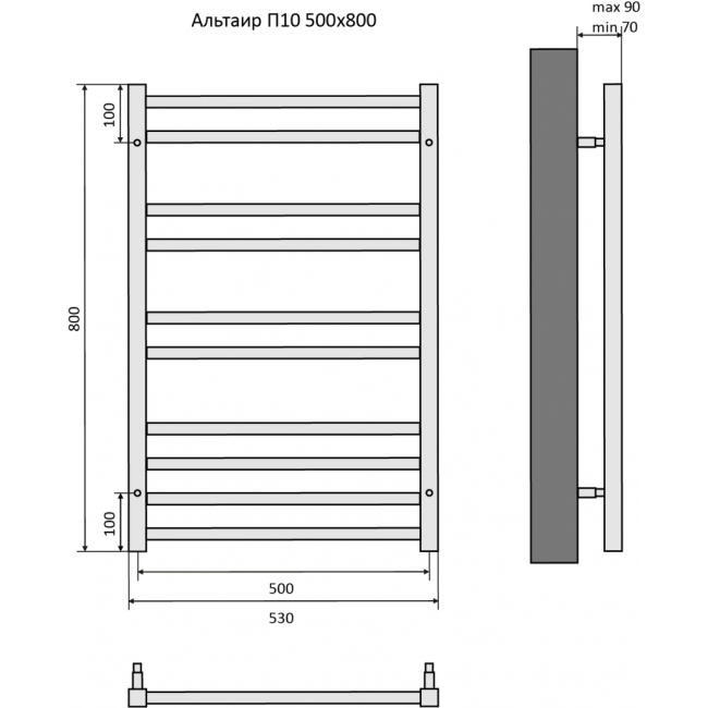 Полотенцесушитель водяной 500x800 Aquatek Альтаир AQ KK1080CH хром купить с доставкой. 100% Оригинал. Гарантия!