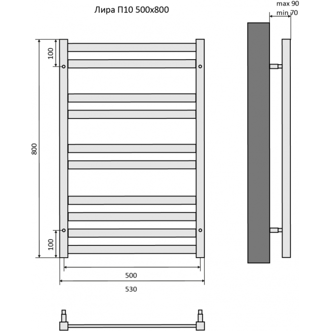 - Простота установки — водяной полотенцесушитель легко монтируется на стену и подключается к системе горячего водоснабжения, что позволяет сэкономить время и силы на установку. Габарит выступа от стены регулируется телескопическими крепежами
