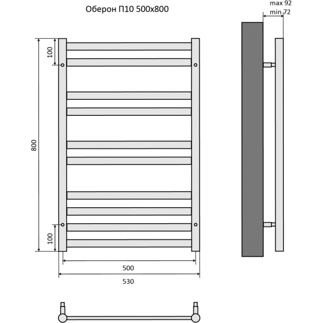 Полотенцесушитель водяной 500x800 Aquatek Оберон AQ RO1080BL черный купить с доставкой. 100% Оригинал. Гарантия!