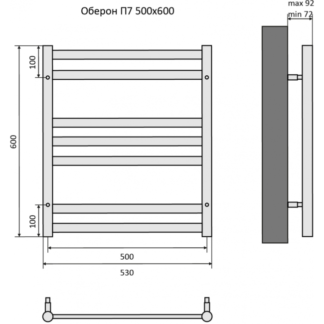 Полотенцесушитель водяной 530x600 Aquatek Оберон AQ RO0760CH хром купить с доставкой. 100% Оригинал. Гарантия!