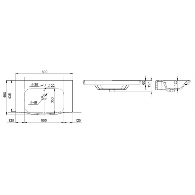 | Расположение отверстий для смесителя | в центре |