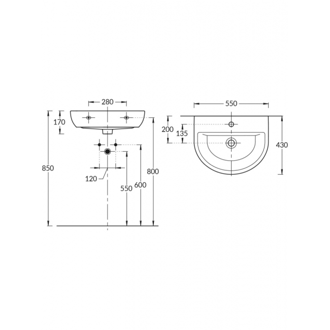Раковина в белом глянцевом цвете с переливным отверстием и хромированной накладкой, ширина 55 см. Может использоваться с подвесными тумбами PRO.