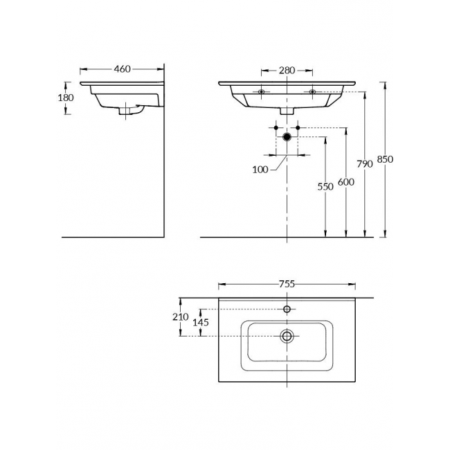 | Расположение отверстий для смесителя | в центре |