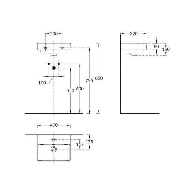 | Расположение отверстий для смесителя | в центре |