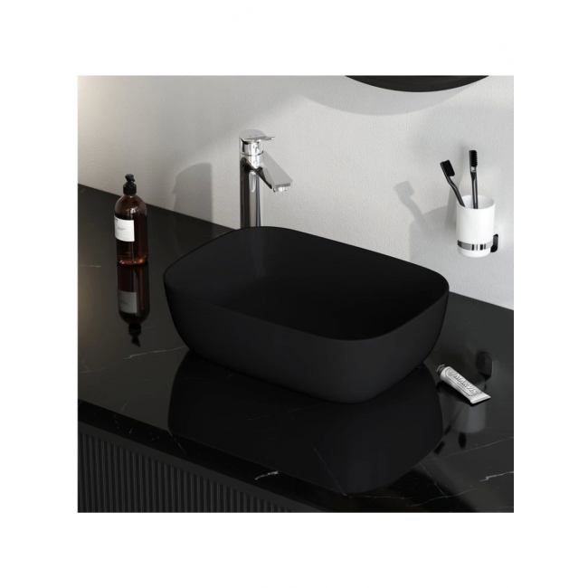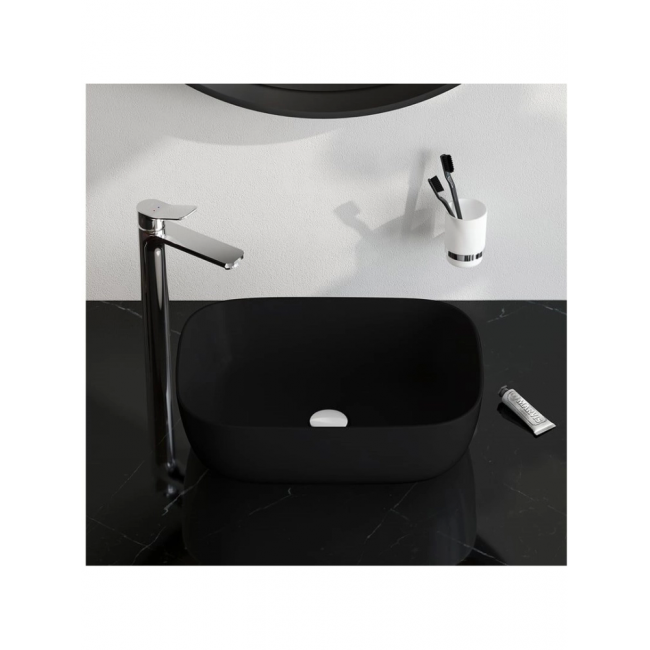 Дизайнерская накладная раковина идеально комбинируется с мебелью и столешницами коллекции Func. Чаша раковины большого объема гарантирует комфорт и удобство при использовании.