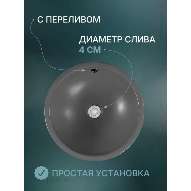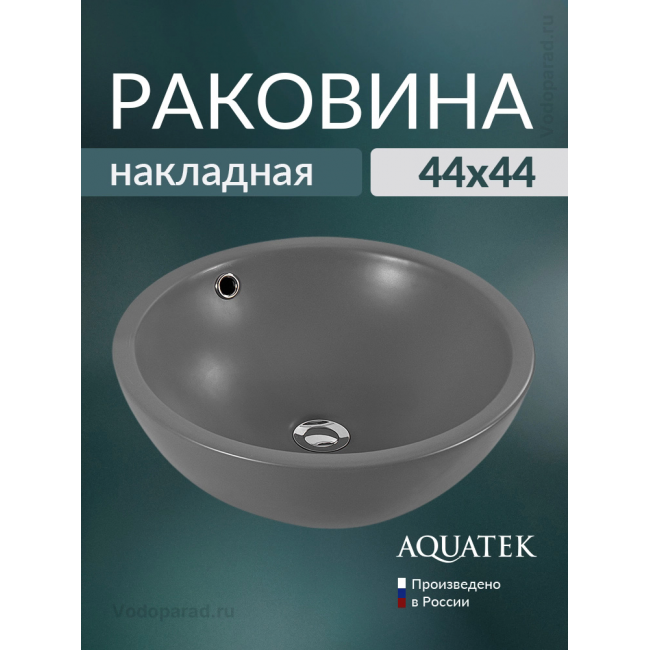 Раковина накладная Aquatek 45 AQ5354-MG серая купить с доставкой. 100% Оригинал. Гарантия!