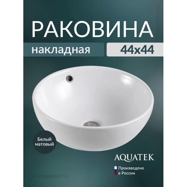 Раковина накладная Aquatek 45 AQ5354-MW белая матовая купить с доставкой. 100% Оригинал. Гарантия!