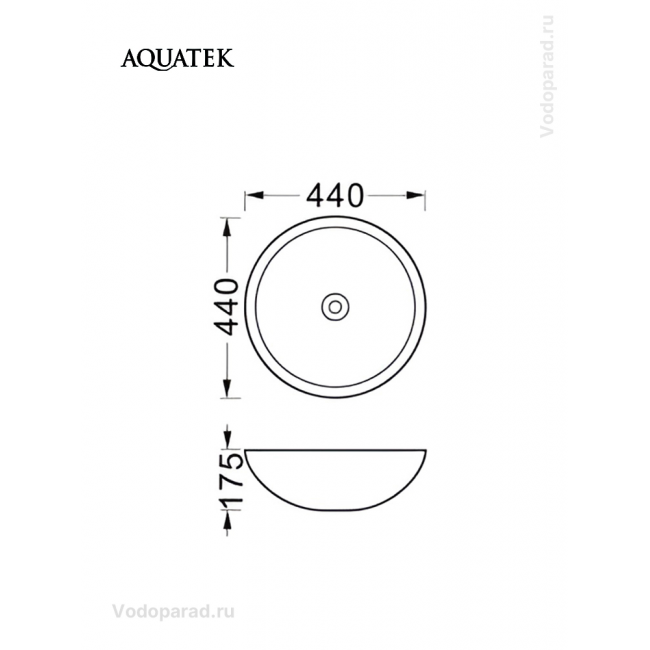 Раковина Aquatek изготовлена из высококачественного глазурованного 100% санитарного фарфора, который на протяжении всего срока службы сохраняет идеальную белизну. Раковина выполнена в едином стиле с другими предметами этой же коллекции – биде и унитазами. Установка накладной раковины не требует сложного монтажа, ее можно установить практически на любую ровную поверхность. В умывальнике предусмотрен встроенный канал слива-перелива в виде специальной полости на случай переполнения чаши.