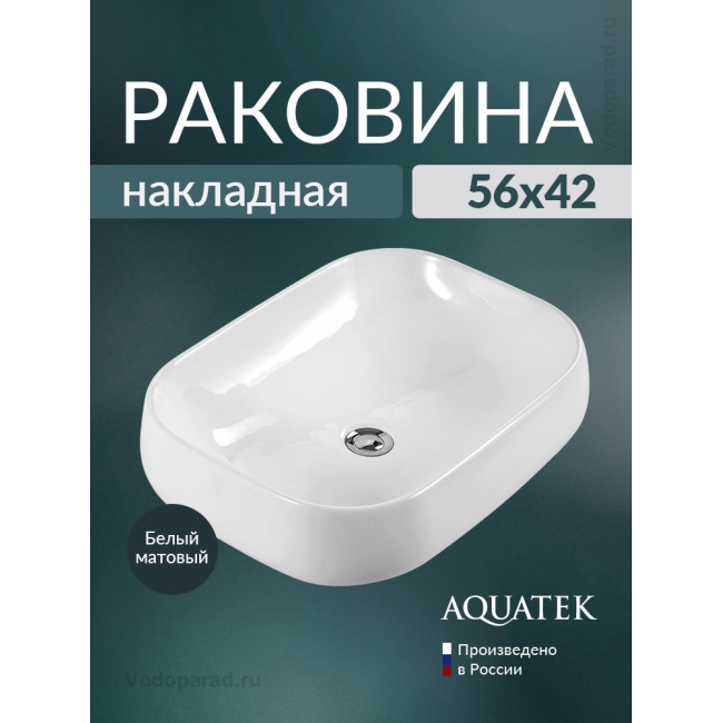 Раковина накладная Aquatek 60 AQ5526-MW белая матовая купить с доставкой. 100% Оригинал. Гарантия!