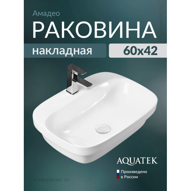 Раковина накладная Aquatek Амадео 60 AQ6042-00 белая купить с доставкой. 100% Оригинал. Гарантия!