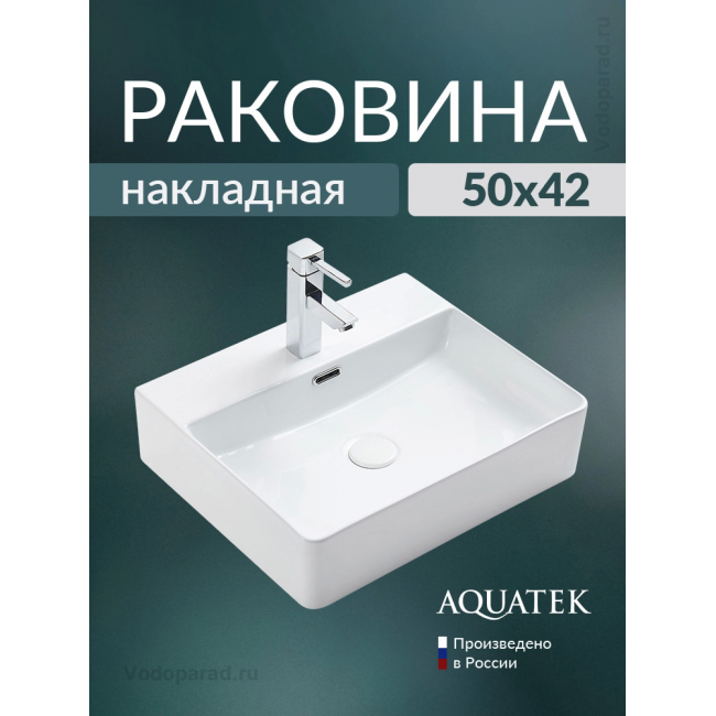 Раковина накладная Aquatek AQ3231-00 50х42 см белая купить с доставкой. 100% Оригинал. Гарантия!