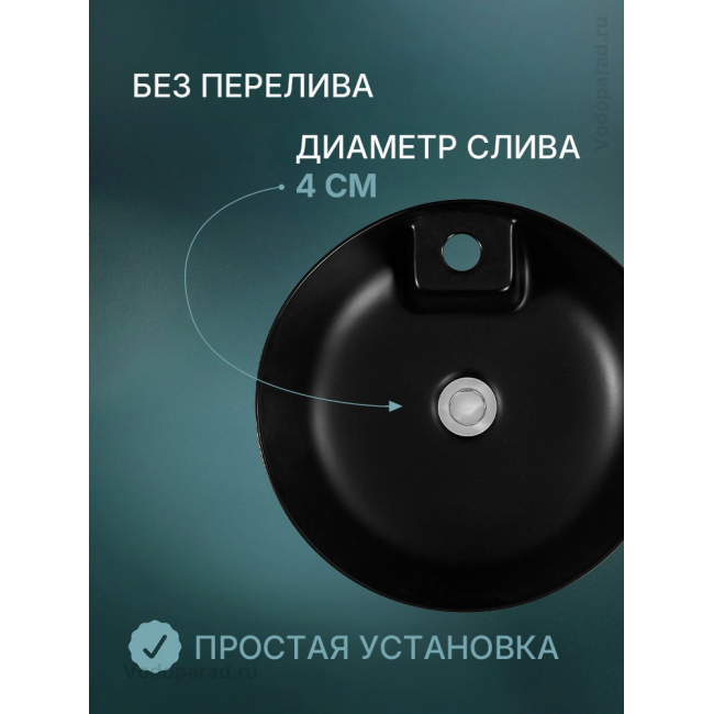 Раковина накладная Aquatek Европа 45 AQ5212-MB черный купить с доставкой. 100% Оригинал. Гарантия!