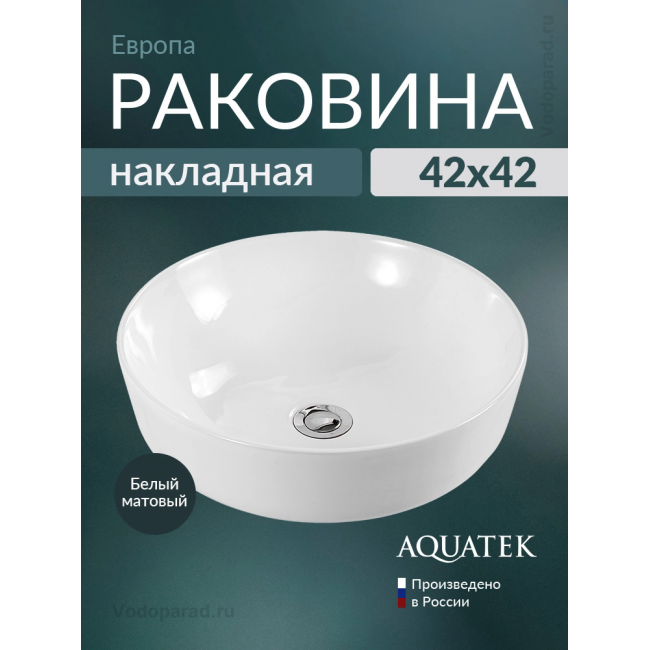 Раковина накладная Aquatek Европа 45 AQ5558-MW белая матовая купить с доставкой. 100% Оригинал. Гарантия!
