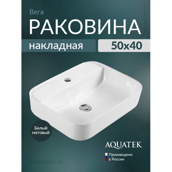 Раковина накладная Aquatek Вега 50 AQ5506-MW белая матовая купить с доставкой. 100% Оригинал. Гарантия!