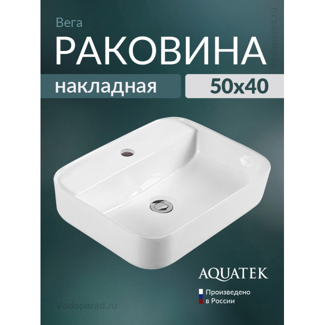 Раковина накладная Aquatek Вега AQ5506-00 на столешницу купить с доставкой. 100% Оригинал. Гарантия!
