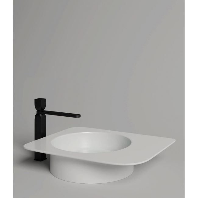 Накладная раковина со скрытым донным клапаном может располагаться на любой поверхности, а также на специальной консоли, разработанной Маурицио Мандзони для коллекции NINFEA.