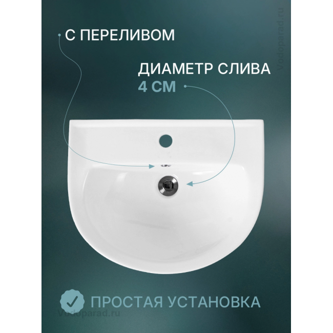 Раковина подвесная Aquatek 55 AQ5420-00 белая купить с доставкой. 100% Оригинал. Гарантия!