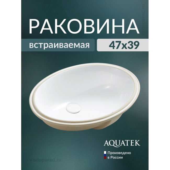 Раковина встраиваемая Aquatek AQ0181-00 46,5х38,5 см белая купить с доставкой. 100% Оригинал. Гарантия!