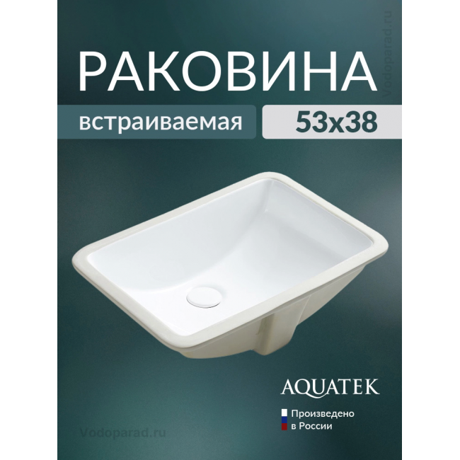 Раковина встраиваемая Aquatek AQ10491-00 53х38 см белая купить с доставкой. 100% Оригинал. Гарантия!