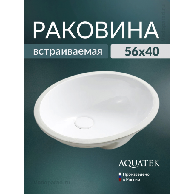 Раковина встраиваемая Aquatek AQ8091-00 56х40 см белая купить с доставкой. 100% Оригинал. Гарантия!
