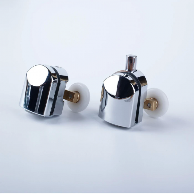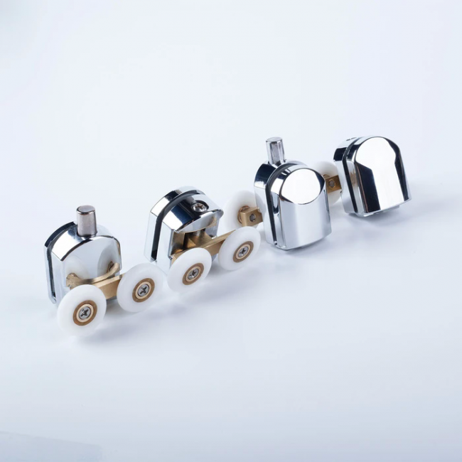 Комплект роликов для раздвижных дверей душевой кабины или ограждения. Подходят для стекол толщиной 5-6 мм. Комплект из 4 штук (2 верхних и 2 нижних ролика).