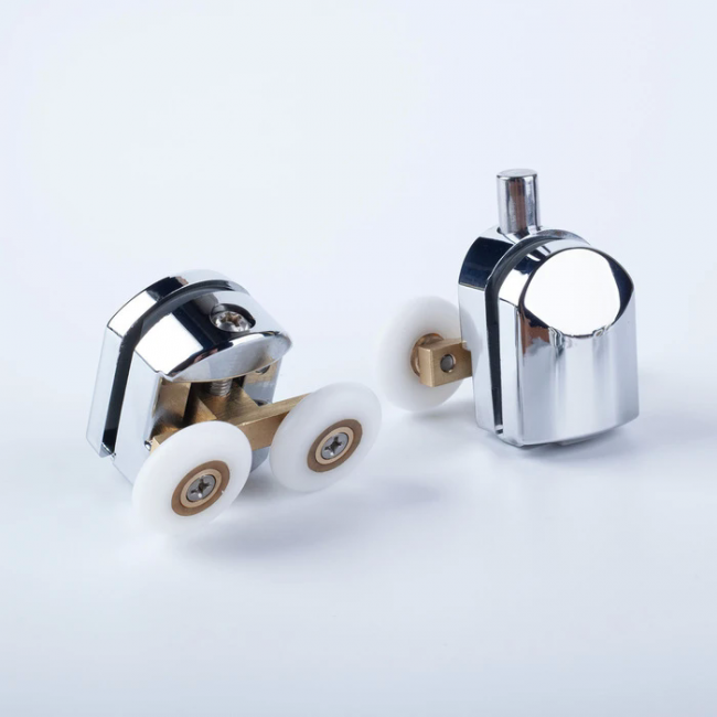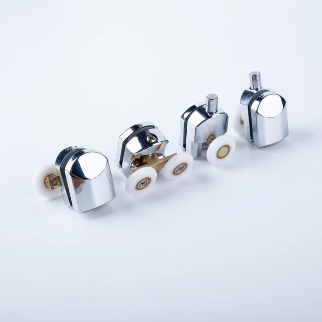 Комплект роликов для раздвижных дверей душевой кабины или ограждения. Подходят для стекол толщиной 5-6 мм. Комплект из 4 штук (2 верхних и 2 нижних ролика).