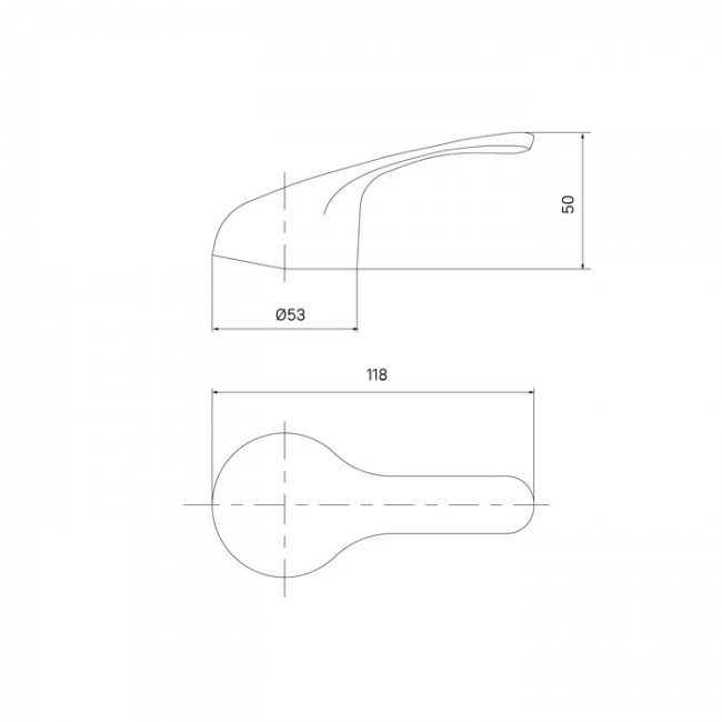 Универсальная сменная ручка для смесителя классической вытянутой формы. Подходит для картриджа диаметром 35 мм.