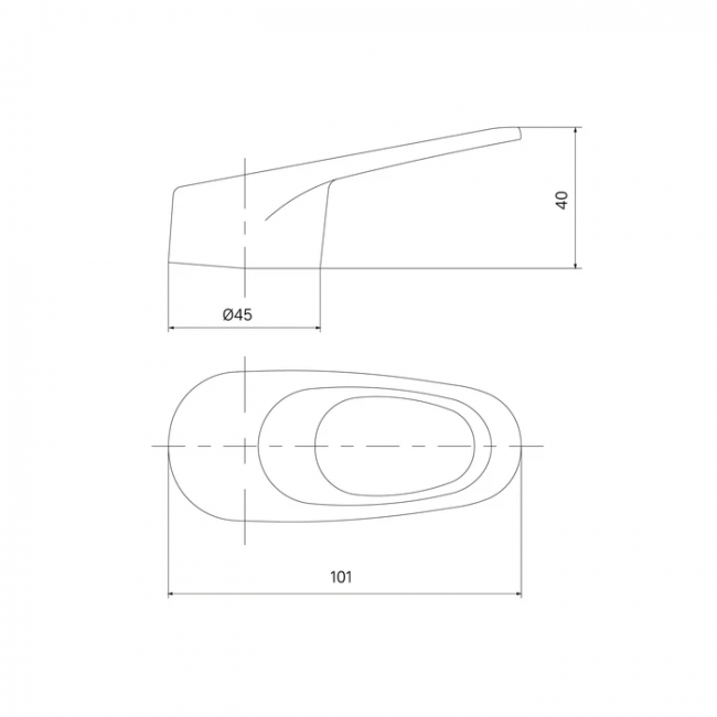 Универсальная сменная ручка для смесителя классической вытянутой формы. Подходит для картриджа диаметром 40 мм.