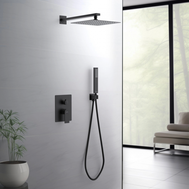 | Комплектация | 1. Смеситель из латуни с установочной коробкой на 2 потребителя (внешняя и скрытая часть) 2. Душевой гарнитур: лейка, шланг, шланговое подсоединение с держателем 3. Верхний душ 4. Декоративные накладки на стену из нержавеющей стали 3 мм |