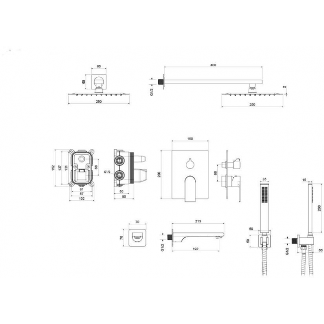 | Размер верхнего душа, см | 25х25х0,2 |