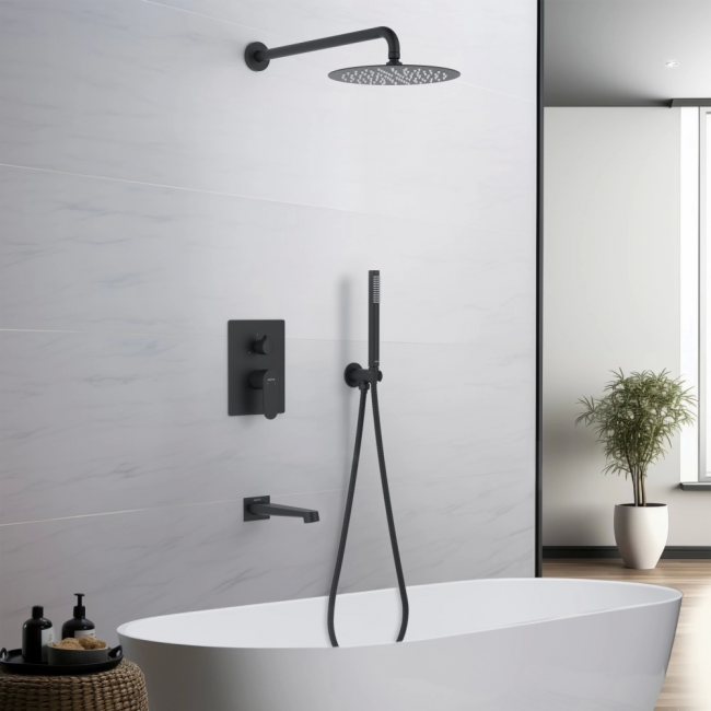 Set 4 в 1 душевой комплект AQUATEK, матовый черный AQ1273MB ОБЕРОН купить с доставкой. 100% Оригинал. Гарантия!