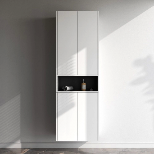 Вся мебель из коллекции подчинена единой визуальной концепции что позволяет легко комбинировать между собой шкафчики и ниши разных размеров. Теперь вы точно сможете создать в своей ванной идеальное место где найдется место для каждой вещи.