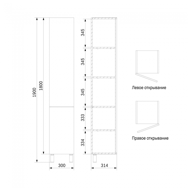 Впервые в доступном сегменте: фурнитура push-to-open последнего поколения. Ширина шкаф-колонны - 30 см.