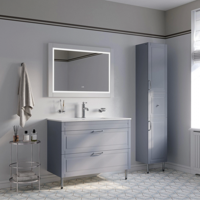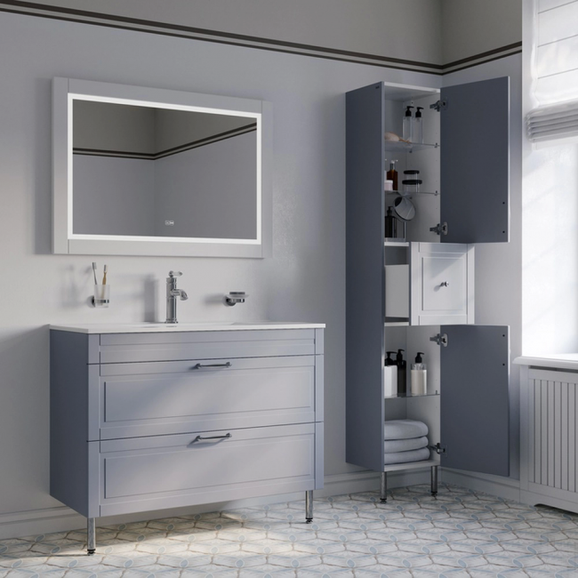 Напольный пенал Oxford изысканного светло-серого цвета – модное сочетание классического стиля и стиля ретро. Он органично впишется в интерьер благодаря элегантному фрезерованному фасаду и узнаваемому дизайну. Удобный выдвижной ящик создает дополнительное пространство для хранения нужных мелочей. Стеклянные полки надежно фиксируются специальным механизмом, что предотвращает риск их случайного повреждения. Хромированные ножки и ручки дополняют цвет фасада и сочетаются с дизайном одноименных смесителей IDDIS® и смесителей в стиле ретро. Несложно подобрать все необходимое для создания гармоничного интерьера. Поверхность фасадов бархатистая, приятная на ощупь. Это ощущение создает полуматовая полимерная эмаль с эффектом soft touch. Фурнитура рассчитана на 30 000 открываний – это более 10 лет исправной работы.Гарантия на мебель IDDIS® – 3 года.