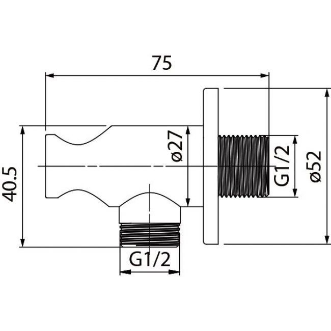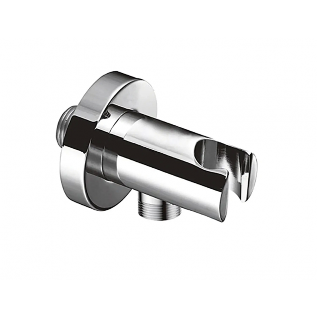 Выход для шланга с держателем для лейки для встраиваемой системы, круглое основание, материал латунь, цвет хром, хромоникелевое покрытие.