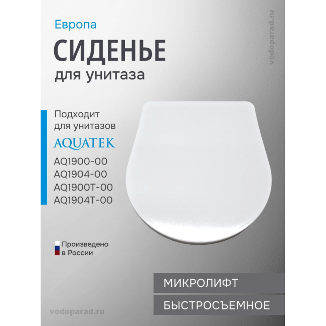 Сиденье для унитаза с крышкой быстросъемное с микролифтом Aquatek Европа AQ0004-00 купить с доставкой. 100% Оригинал. Гарантия!